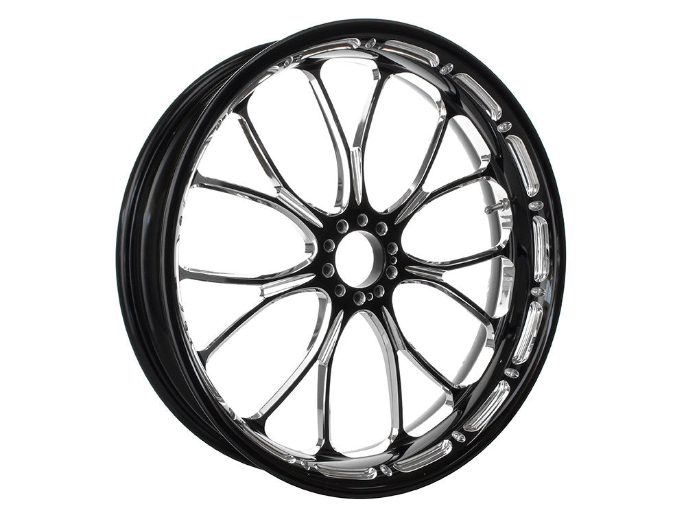 Features & Benefits:-* Gloss Black with Contrasting Highly Polished Accents.* The Heathen wheel begins as 7 spokes and splits into 14 ornate tendrils before blending into the rim center and then follows with a complimentary design on the outer edge of the subtly curving rim face.Tech Tips:-* Requires the additional Purchase of an Application specific Wheel Hub.* Matching Disc Rotor(s) & Pulley are also available for Purchase.Proudly Made in the USA by Pe rformance Machine !