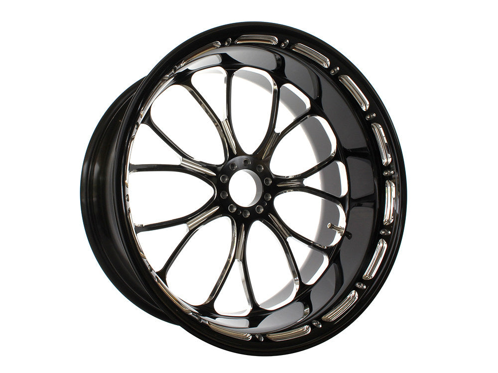 Features & Benefits:-* Gloss Black with Contrasting Highly Polished Accents.* The Heathen wheel begins as 7 spokes and splits into 14 ornate tendrils before blending into the rim center and then follows with a complimentary design on the outer edge of the subtly curving rim face.Tech Tips:-* Requires the additional Purchase of an Application specific Wheel Hub.* Matching Disc Rotor(s) & Pulley are also available for Purchase.Proudly Made in the USA by Pe rformance Machine !