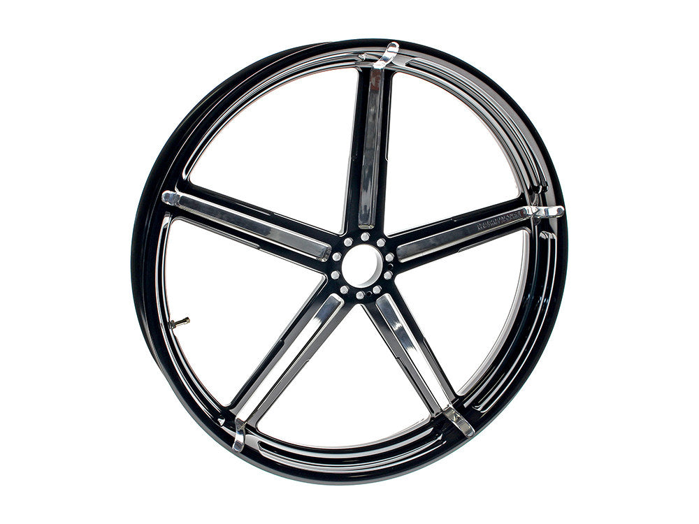 Features & Benefits:-* This design has the perfect formula of contemporary simplicity and a race inspired lightweight tapered and pocketed 5-spoke design.* Gloss Black with Contrasting Highly Polished Accents.Tech Tips:-* Requires the additional Purchase of an Application specific Wheel Hub.* Matching Disc Rotor(s) & Pulley are also available for Purchase.Proudly Made in the USA by Performance Machine !
