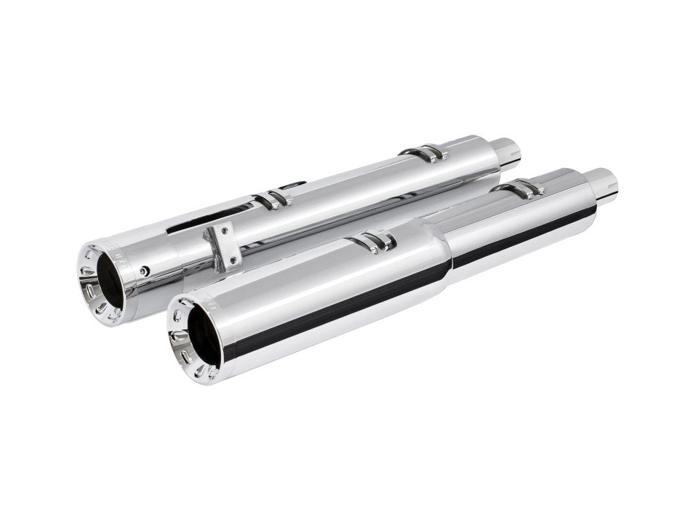 4.5in. Slip-On Mufflers – Chrome with Chrome Straight End Caps. Fits Indian Big Twin 2014up with Hard Saddle Bags.