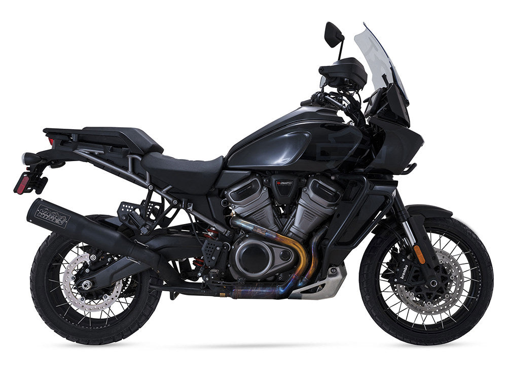 The Vance & Hines Adventure Hi-Output 450 delivers a strong increase in horsepower and torque vs the bike’s stock Revolution Max exhaust system while reducing overall weight of the exhaust by nearly 6 lbs. The new rugged look is a familiar round, stepped-style Hi-Output canister, but with a new brushed finish which enhances the bike’s style over the stock black exhaust.* Designed Specifically for the Revolution Max 1250 motor* Cutting-Edge Baffle Design Delivering Bold Rumble* Meets SAE J2825 Sound Standard* Stepped 4.5-inch Diameter Muffler* 5 Horsepower and 5 ft-lb Torque Increase Over Stock* 6-lbs Lighter than Stock* CNC Machined Billet End Cap* Improved Rider Boot Clearance* Compatible with Harley-Davidson Factory Saddlebags and Center Stand