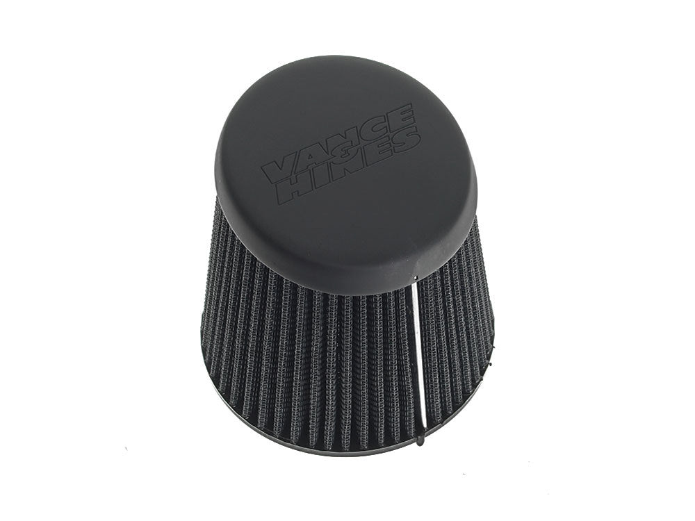 * High-Flow Oiled-Media Filter* Black Plated Filter Top* Stamped Vance & Hines Logo* Black-Dyed Filter PleatsTech Tips:-* Rain Sock = VH-22930