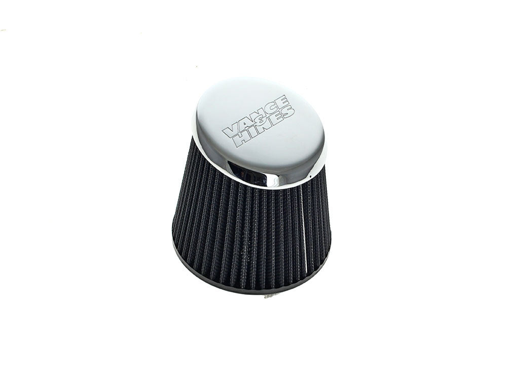 * High-Flow Oiled-Media Filter* Chrome Plated Filter Top* Stamped Vance & Hines Logo* Black-Dyed Filter PleatsTech Tips:-* Rain Sock = VH-22930