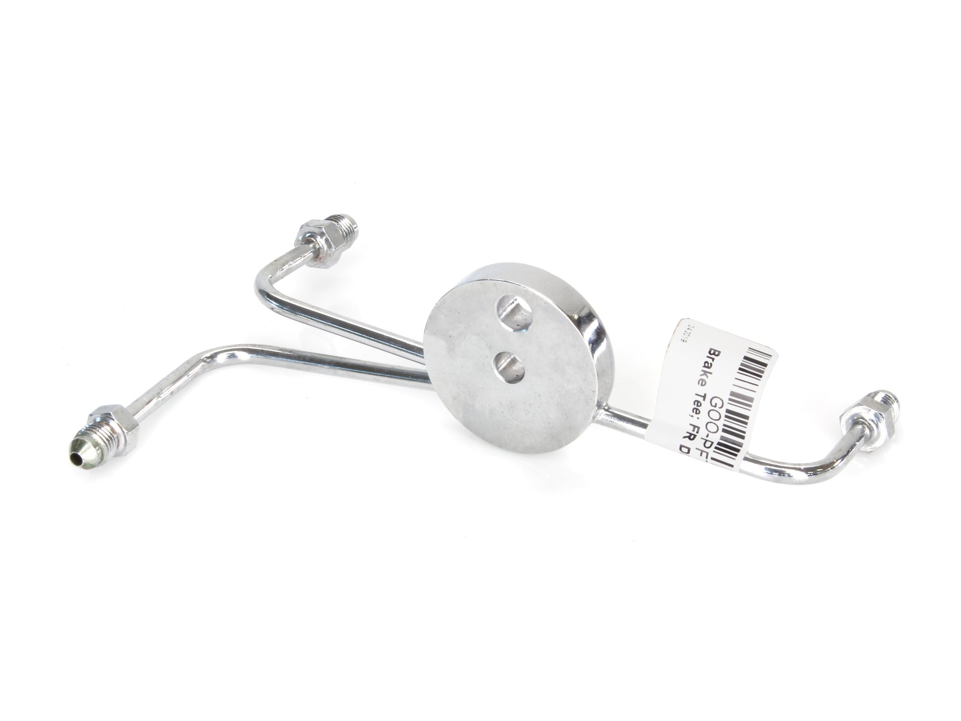Brake tee lower pipes measure 2? out and 2? downBrake tee upper pipe measures 2.5? out and 2.5? up
