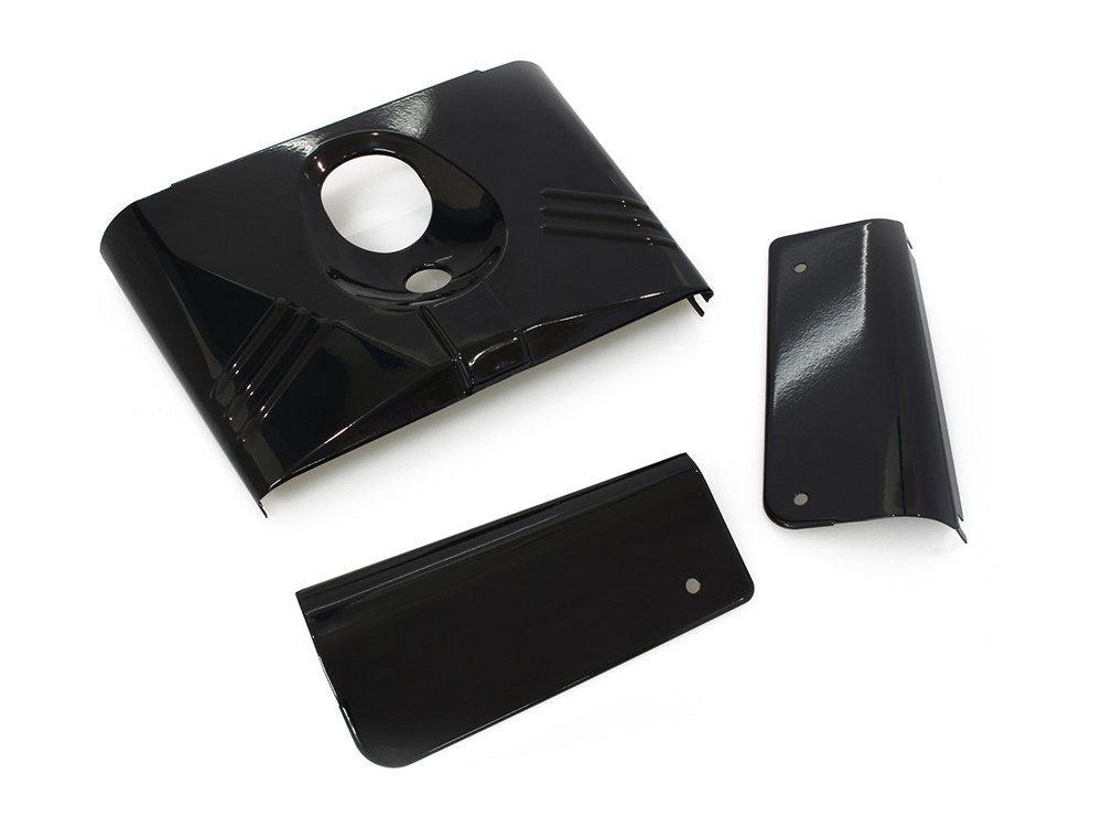 Features & Benefits:-* Three-Piece Gloss Black Fork Tins without Slider Covers.* High quality chromed reproduction fork tins.* Replaces OEM # 670808-86, 67816-86 & 67820-86Suggested Additional Purchase:BAI-23-0304GB – Standard Length Slider Covers – Gloss Black.Tech Tips:-* Models equipped with front passing lights may need a hole drilled in the rear panel for on/off switch