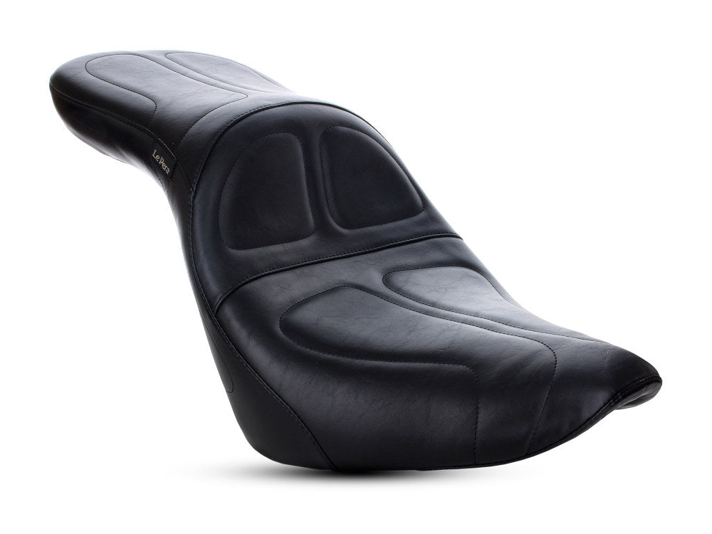 Features & Benefits:-* The Maverick Daddy Long Legs has the comfort of our Maverick only moves the driver back 2? for our tall riders. * A supportive seat that still looks custom, the Maverick is a good choice for those who prize comfort over minimalism. * Best for long days in the saddle, the Maverick is the LePera saddle that is most comfortable while still sitting back and maintaining a lower profile.* Special contours allow movement without giving up support.< P>* 15? Wide Riders Seat. * 13-3/4? Wide Pillion Seat.* Covered with premium-grade black vinyl.* High density ‘Marathon’ moulded foam foundation.* Powder Coated Steel Base Carpeted between Seat & Fender.Proudly made in USA by Le Pera – Family owned since 1972 !
