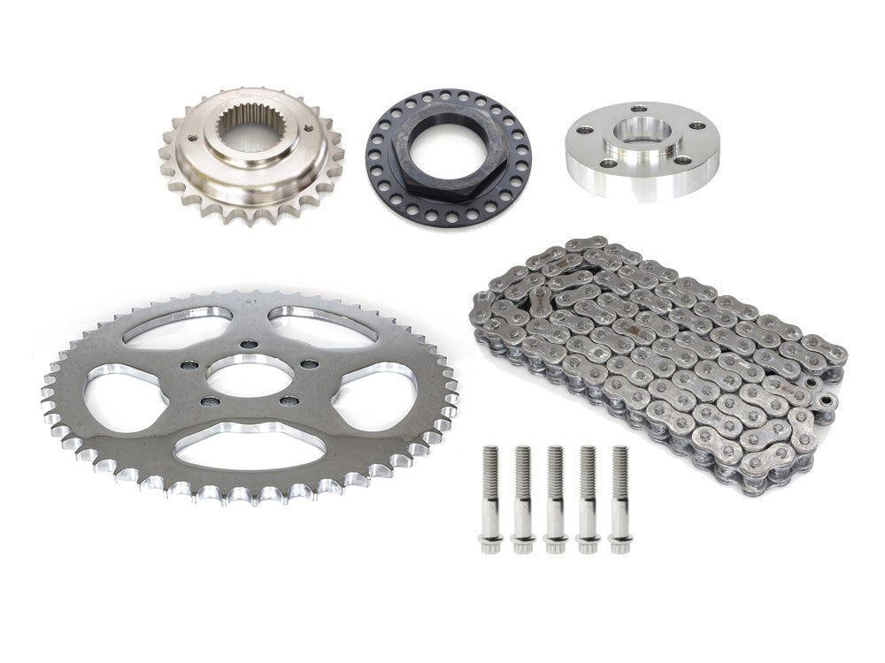 Rear Drive Belt to Chain Conversion. Fits M8 Softail 2018up with 180mm Rear Tyre. Silver rear Sprocket. Final Drive Ratio = 2.04:1