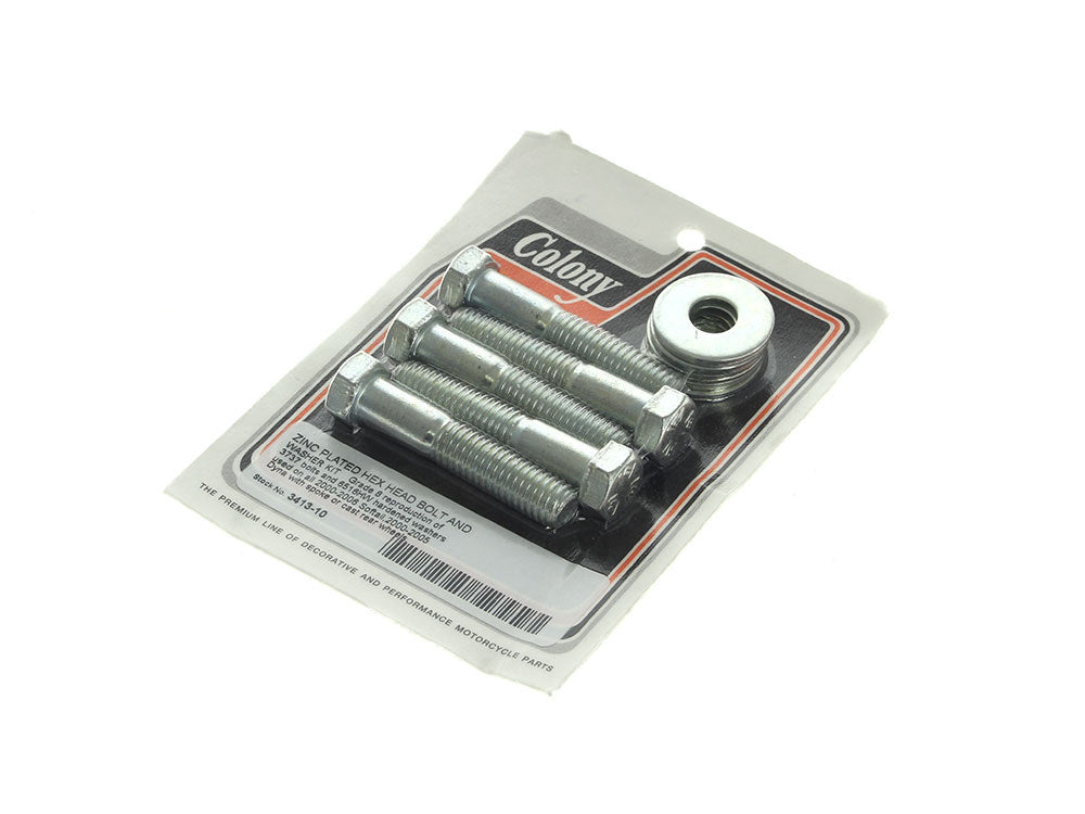 Features & Benefits:-* Typically Fits Softail 2000-2006 & Dyna 2000-2005.* Replaces OEM # 3737 Bolts & 6516HW Washers* Use these Zinc Bolts with the Black Rear Pulley Sprocket Bolt Covers BAI-D26-0152BTech Tip:-* UNC 7/16-14 x 2-1/4? Long Hex Bolts.Proudly Made in the USA by Colony Machine !