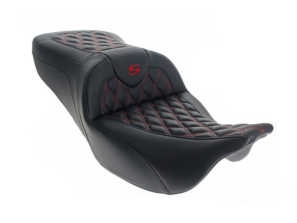 Roadsofa LS Dual Seat with Red Double Diamond Lattice Stitch. Fits CVO Touring 2023up, Street Glide & Road Glide 2024up, Touring 2025up