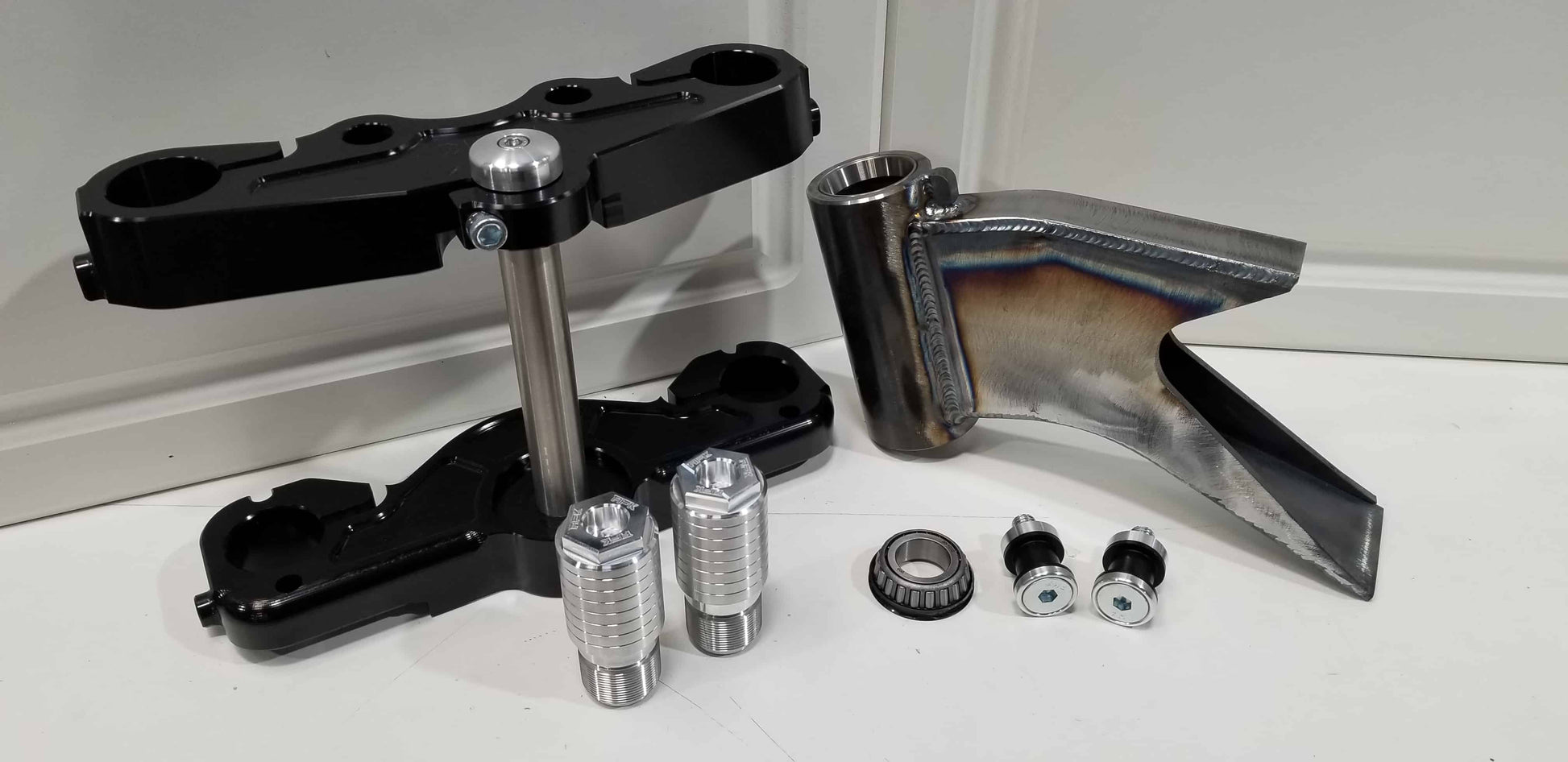 This rake kit is designed for all 2000-2017 twin cam softail models utilizing a 26? front wheel. Kit includes all the necessary components to rake your softail. This kit comes with the weld on neck, trees, fork leg extension, hardware and pictures illustrating frame preparation. Fork extensions are pre drilled on top for 1/8? NPT for those using front air ride. This kit is designed to be 2.5? off the ground when aired out. We also offer the ?super low? neck that will sit the bike approximately .5? off the ground. The ?super low? kit will require the AFK drop pads (kickstand no longer works). Note: additional alterations to the rear of the bike will be necessary to utilize the ?super low? neck kit.