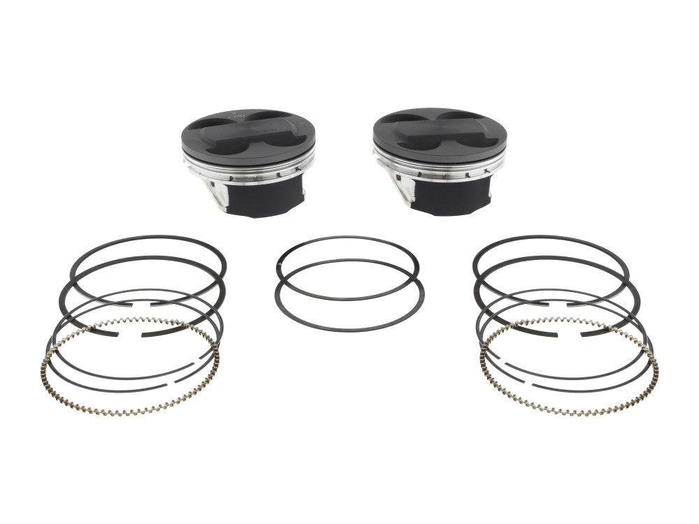 Features & Benefits:- * Super Duty KB Forged Coated Anodized Piston Kit.* 107ci to Big bore 124? piston kit for Milwaukee 8 when using 4.250? Bore Cylinders* No head modification required * Anodized top ring groove and crown.* Line2Line abradable skirt coating applied to .003? total thickness for a Zero initial fit to allow coating to hone in for a tight quiet running clearance.* Round Wire Locks.* Premium Hastings 1.5mm 1.5mm 3.0mm Steel Nitride top ring with a Ductile Napier second.* Forced wrist pin oiling* Complete kit includes: two pistons, rings, wrist pins and clips.Tech Tips:-* Suggested additional purchase โ top end gasket kit # CG-C10223* Follow Ring End Gap & Piston to Cylinder Clearances as per the supplied Manufacturers Instructions.* The 4.250? bore will net 124? with a 11.4:1 compression ratio with a stock cylinder head.* Valve Pockets designed to accept up to a +4mm oversized intake and exhaust valves.* Requires Daytona โDrop-inโ 4.250? bore cylinders #DAY-80660* No Case machining required.* Pull the engine down first & measure the existing bore to determine if oversize pistons are required PRIOR to purchase, we do not take back piston kits. The onus is on the assembling technician to validate the cylinders & required pistons.